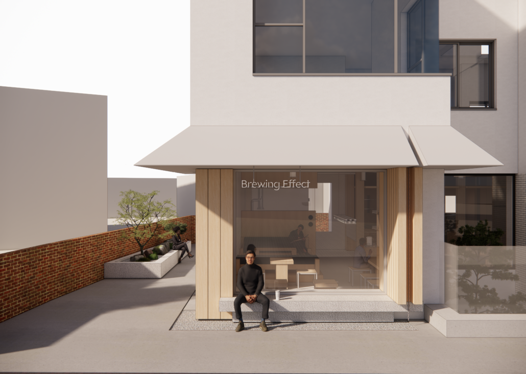 본 프로젝트는 브루잉이펙트라는 커피브랜드의 확장입니다. 수년간 같은 자리에서 많은 단골을 만들기도 했고, 다양한 매체에 소개된 공간이지만, 국내에서 영향을 미치는 영역은 한계를 보여주고 있습니다. 커피의 질, 사업의 규모, 바리스타의 실력 등 카페의 확장을 만드는 다양한 요소가 있지만, 현재 브루잉이펙트에 부족한 부분은 공간에 있다고 생각합니다. 하얀 바탕에 밝은 우드톤을 수직과 수평의 매스를 사용해 잘 짜여져 있지만, 가장 중요한 건축과 인테리어의 연계가 부족했습니다.